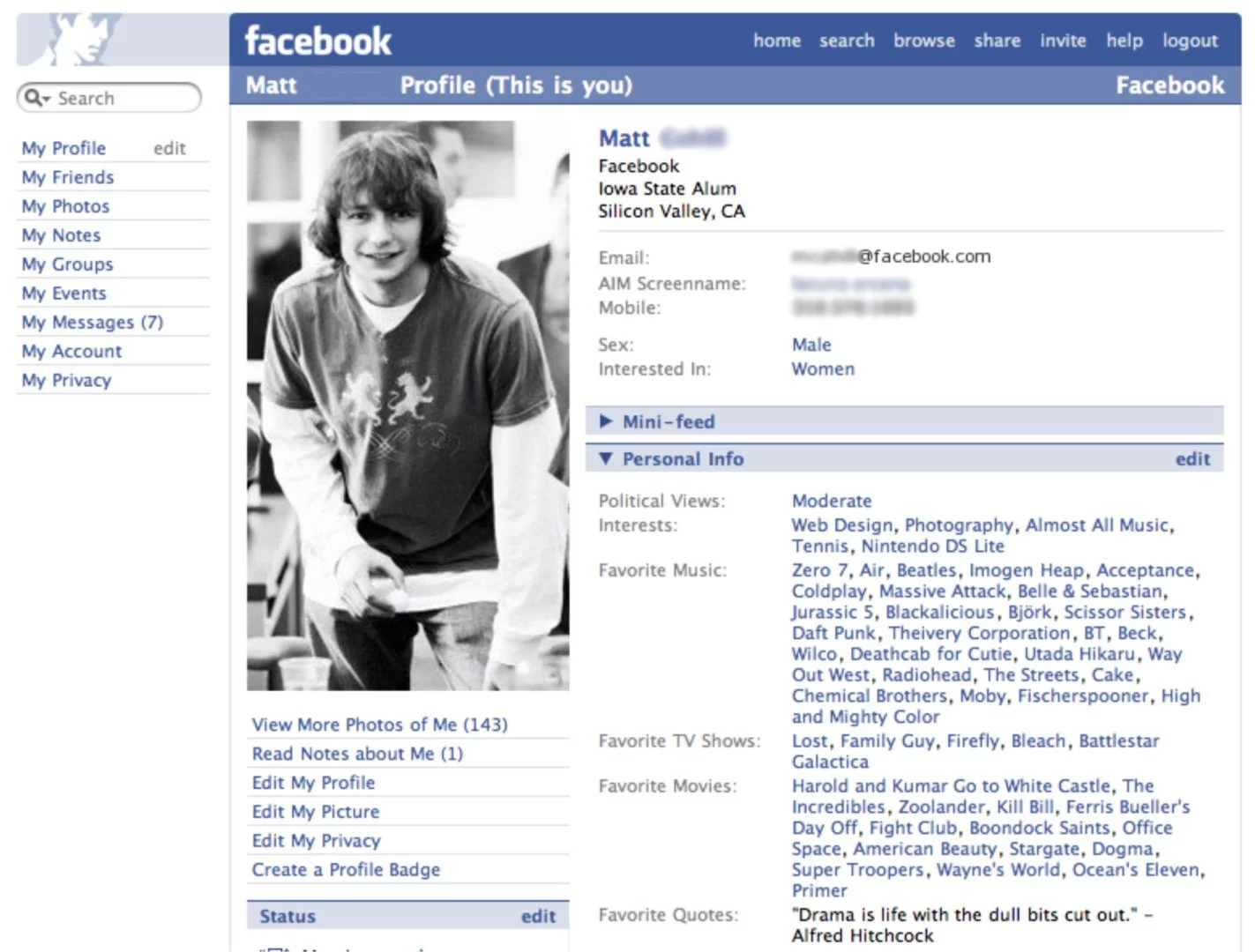 If no one could see our Facebook but people we literally see every day at school, what’s the point of transferring files to friends the old way? The old way was literally burning a data CD or bringing your camera to your friend’s computer, installing the software, transferring it that way. It was also a way of looking “cool”, I think, by posting pictures of you and your friends at college parties, playing beer pong, showing people that you had a social life. Maybe to signal to people, “Hey, I go to parties and concerts! Invite me!” and then people would start inviting me to their events for their parties. Facebook was a big part of socializing back then.